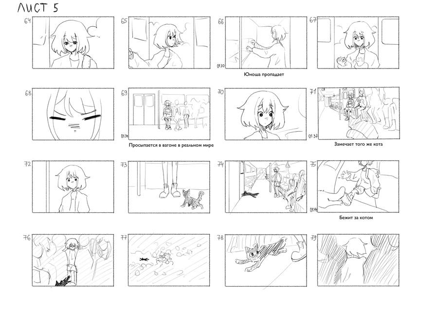 Синопсис Девушка садится в метро и засыпает. Во сне она попадает в волшебный мир. Там кот крадет у нее брелок, и героиня бежит за воришкой. Кот приводит ее к юноше. Когда девушка просыпается, история повторяется, и она снова встречает этого загадочного юношу.