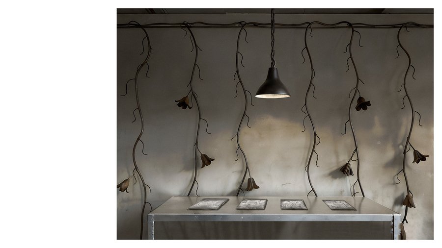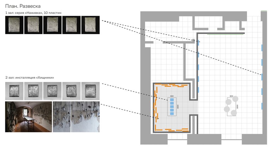 Первый выставочный проект новой галереи из Санкт-Петербурга, посвящённый размышлению на тему катастрофы. Экспозиция «Хищников» состоит из металлических пластин и литой инсталляции, выполненной по мотивам ранней выставки в мастерской художницы. Хищные, но прекрасные цветы, спустившиеся на лианах в комнату, где некогда творил художник — это мир, день за днем приносящий все больше опасностей.
