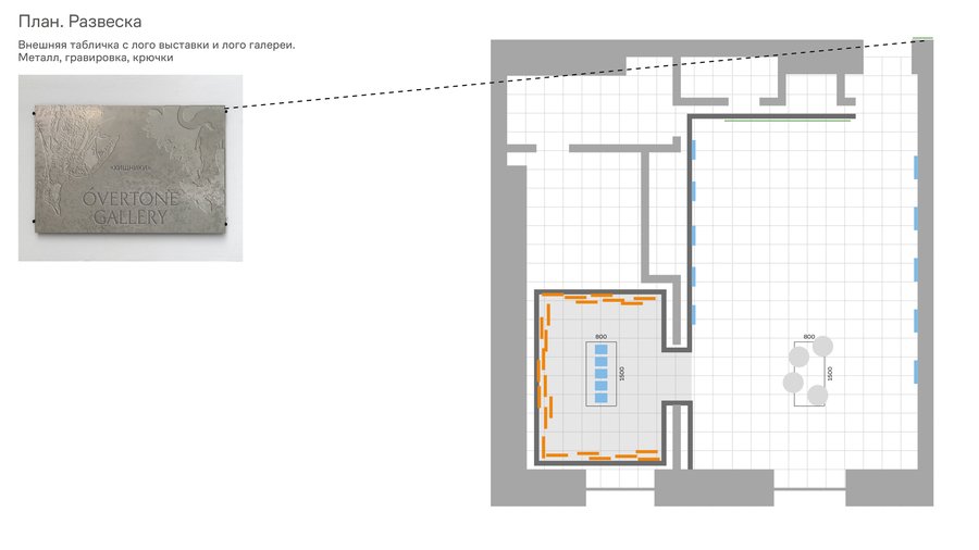 Навигационная внешняя табличка с лого галереи (металл, гравировка, крючки)