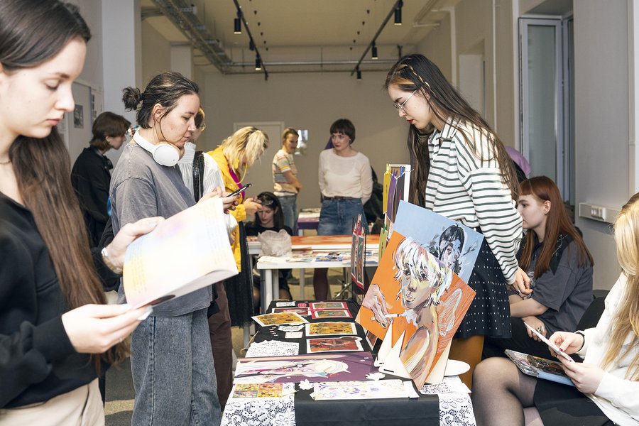 26 сентября 2024 на масштабном ивенте в HSE CREATIVE HUB гостей ждал поп-ап-стор с мерчем от студентов магистратуры «Иллюстрация и комикс» Школы дизайна НИУ ВШЭ, выступления преподавателей и художников, комикс-баттл на актуальные темы современного издательского процесса, а завершением события стал speed dating студентов с экспертами индустрии.