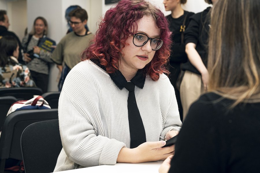 Студентка 2 курс магистратуры «Иллюстрация и комикс» Школы дизайна НИУ ВШЭ Дарья Чёрная в своем выступлении отметила важность бумажного формата для комикса. Авторы придумывают интересный сторителлинг, стараются создать красивую графику и работают над цветовой коррекцией: «Но когда история переходит в бумажный формат, она становится чем-то большим. Она становится продуктом».