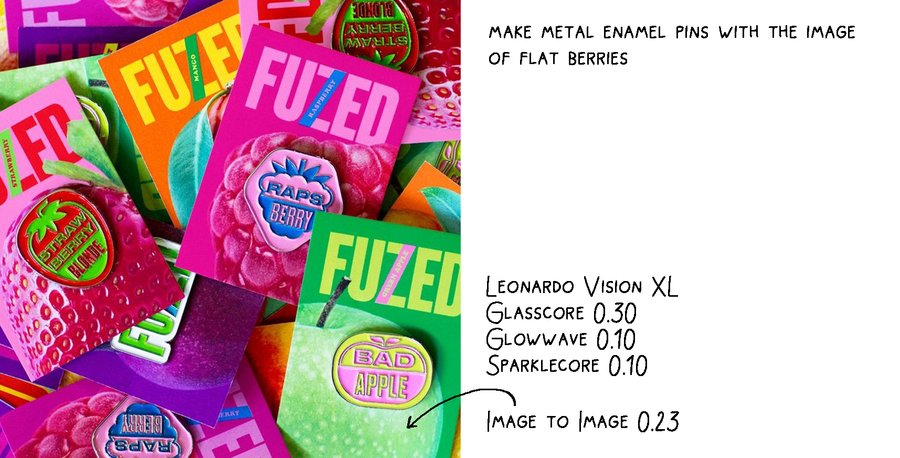 Leonardo Vision XL, Glasscore 0.30, Glowwave 0.10, Sparklecore 0.10 | make bright and contrast fabric patches on a T-shirt with the image of berries, blue background