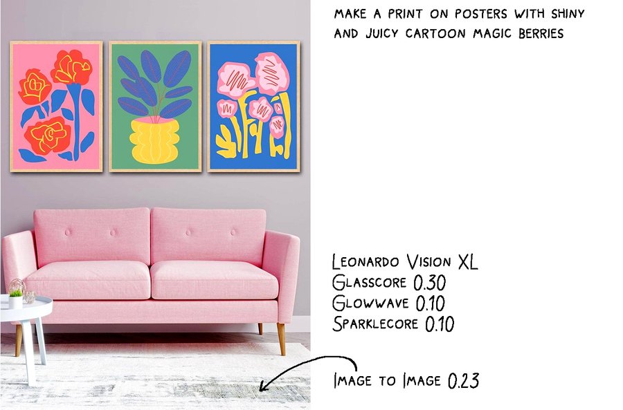 Leonardo Vision XL, Glasscore 0.30, Glowwave 0.10, Sparklecore 0.10 Colorpop 0.10 | а glossy shopper with a picture of painted berries