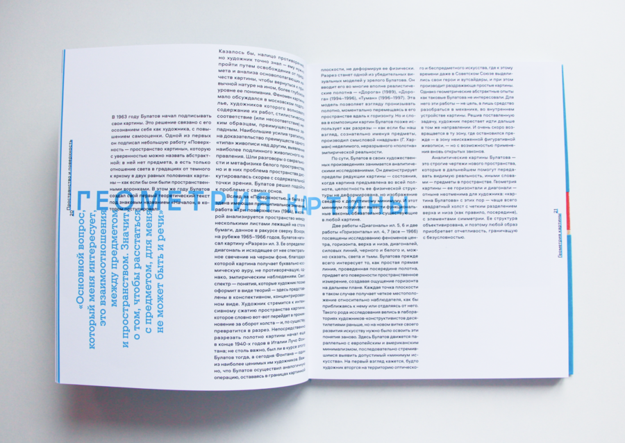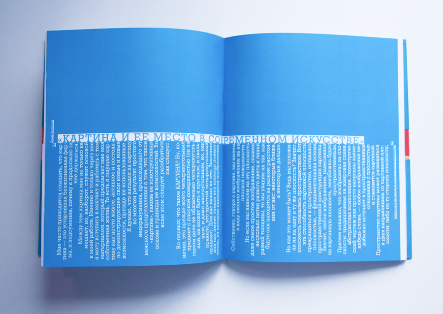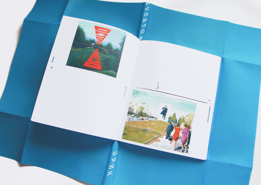 Главными конструктивными особенностями книги стала раскрываемая обложка и горизонтальные разрезы страниц в католожных блоках.
