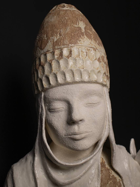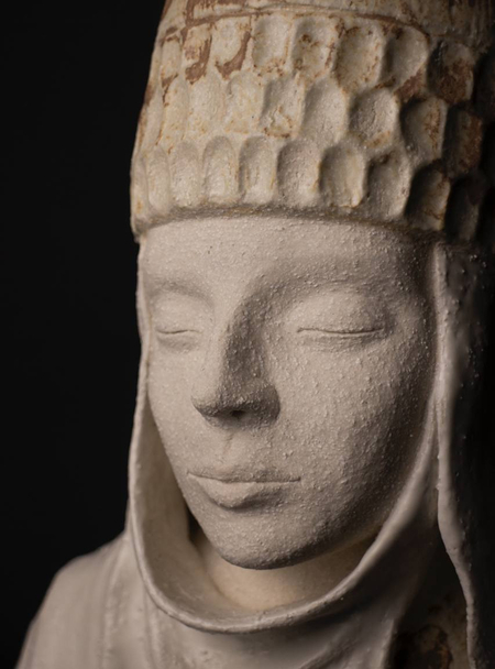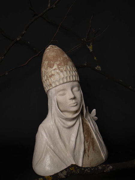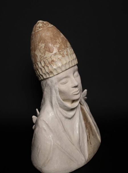 В своей работе я обращаюсь к легенде о правительнице Казанского ханства, Сююмбике, и представляю момент, когда она стоит на грани судьбоносного выбора. Эта скульптура запечатлевает последний миг перед её падением. Лицо Сююмбике отражает спокойствие и решимость, что подчеркивает её внутреннюю силу и стойкость перед лицом неизбежного. Белые бабочки, сидящие на её платке, символизируют свободу и духовное перерождение. Они, как символы перемен, подчеркивают, что каждая история, даже трагическая, может привести к новому началу. Скульптура Сююмбике не только передает историческую значимость её фигуры, но и служит напоминанием о том, что сила духа и стремление к свободе остаются актуальными во все времена.