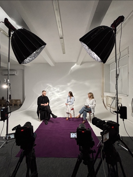 1. Съемка видео-подкаста с искусствоведом и куратором Александрой Даниловой. 2. Съемка видео-подкаста с художником и архитектором Даней Пироговым.