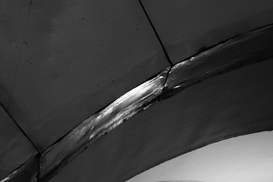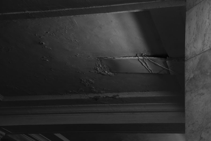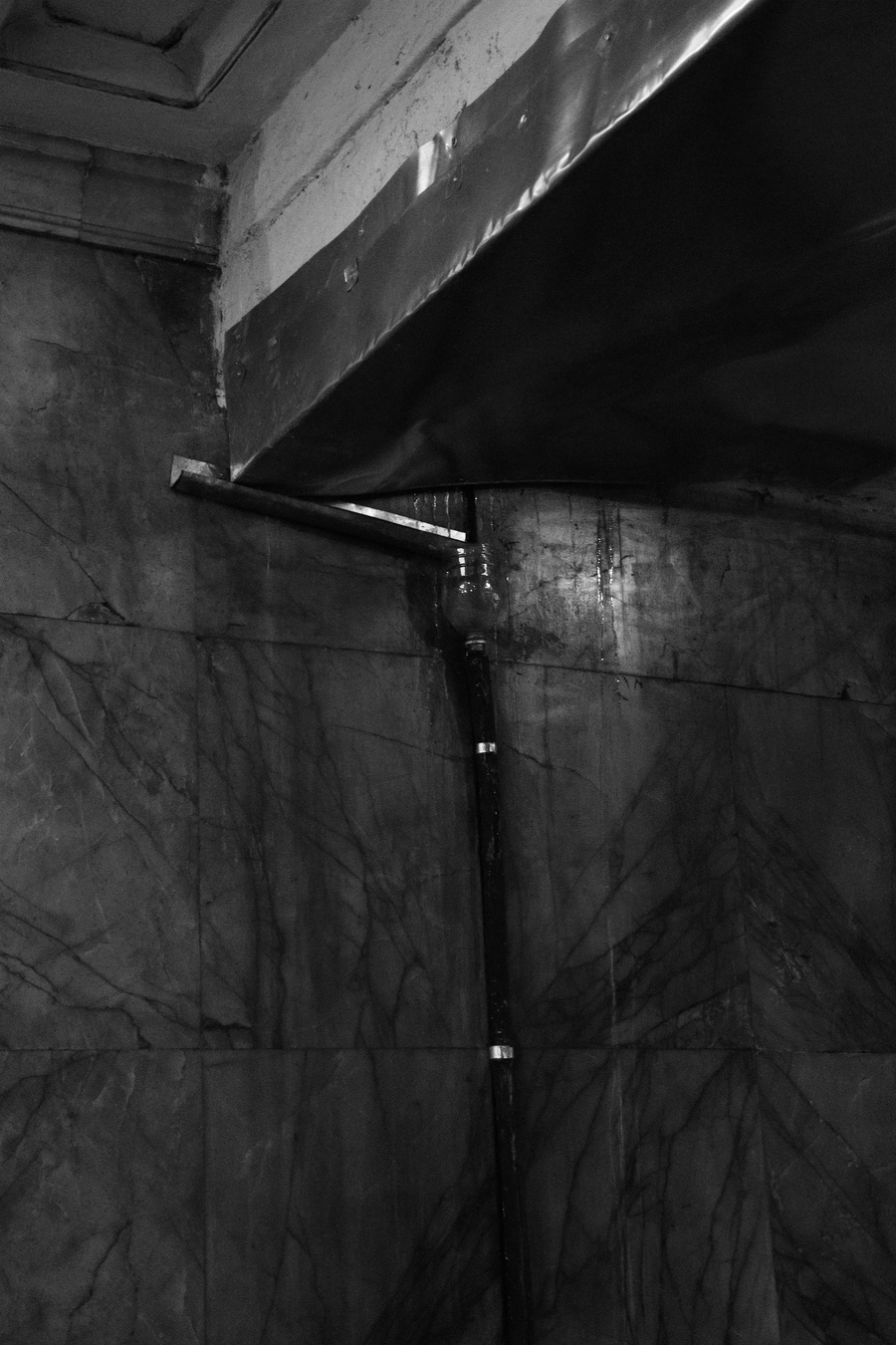 Предметно они реализуются через образную систему (грунтовые воды, по-разному проступающие на поверхности гранитных стен) и выбор материалов, (металл, дерево, люминесцентные лампы).