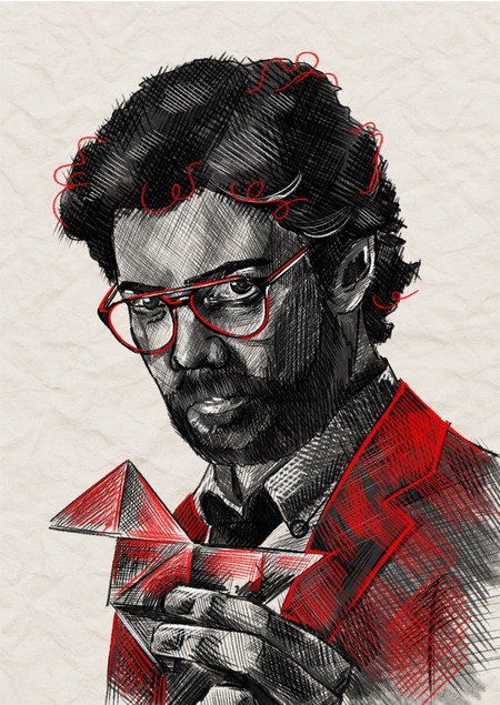 Выбранная стилистика — перекрёстное штрихование в чёрно-белой гамме с акцентами красного цвета — напрямую связана с эстетикой самого сериала. Контрастная графика отражает напряжённую атмосферу борьбы, интеллектуальную игру и эмоциональную глубину событий.