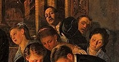 На картине «Прерванное Венчание (Двоежёнец)» мы видим сцену публично раскрытой измены мужчины.