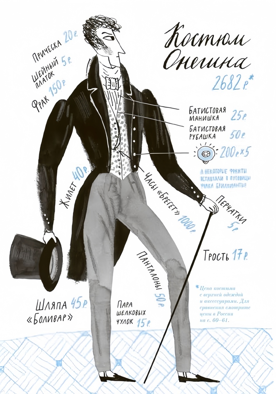 Одним из основных привлекающих внимание деталей является то, что помимо удачного включения отрывков из произведений Пушкина в повествование, стихотворный роман отличается сохранением целостности сюжетной линии и включает важные культурологические подробности. Например, детально изображён облик дворянина эпохи, воплощённый образом Евгения Онегина, с указанием стоимости костюма. А также приводится подробное описание обеденного меню героя с оценкой стоимости каждого блюда. Такой необычный ход прекрасен для осознания ушедших реалий, то есть это делает «Евгения Онегина» более понятным для сегодняшнего читателя.