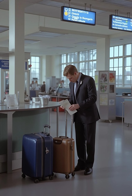Для генерации обложки я использовала нейросеть Krea.ai. Prompt: The room where luggage is checked in. Airport during the day, lots of bright things. Young man in formal setting standing next to suitcase.