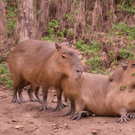 У этих капибар такая же проблема, что у фотографий выше, снова лишние лапы, но картинка выглядит живой и реалистичной, шерстка выглядит натурально
