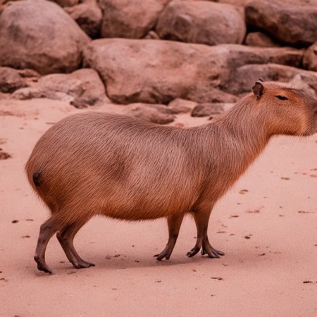 Здесь уже вино распространенную проблему нейросети, а именно создание лишних конечностей. Так и вышло, но характерные детали капибары сохранены