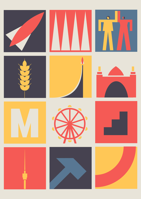 Яркие, минималистичные образы объектов ВДНХ и Москвы, в чём-то конструктивисткие, собираются в мозайки, паттерны и симметричные композиции, которыми полон парк, и расскрывают образ ВДНХ сквозь всю его историю.