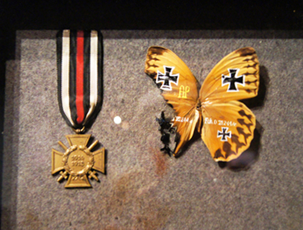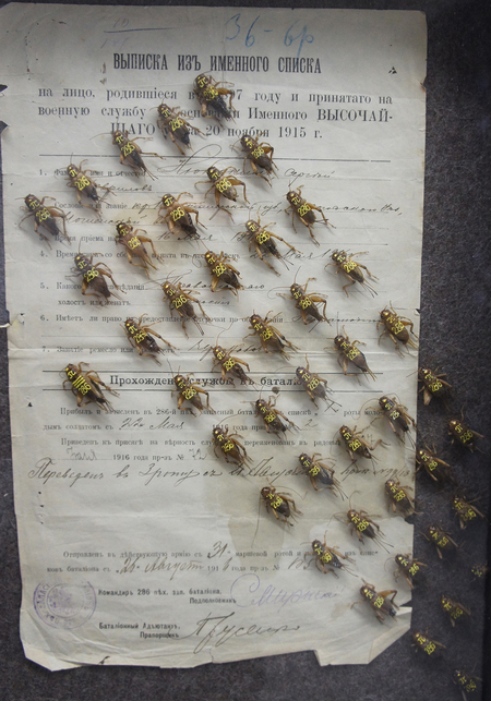 Проект «Инсектицид», приуроченный к столетию начала Первой мировой войны, включает двенадцать работ и цикл ассамбляжей в духе тренч-арта, напоминающих то артефакты, которые обнаруживаются на полях былых сражений, то милитарии — разного рода сувениры и памятные вещи, предметы коллекционирования, связанные с памятью о войне 1914–1918 годов. Образы насекомых — жуков, бабочек, стрекоз, мух, их личинок и гусениц возникают в каждой работе и в каждом экспонате «Инсектицида» не случайно. Они помогают образно воссоздать чувство безотчетного страха, смешанного с брезгливостью, которое охватывало людей в те военные годы. Многим из них наступление многочисленных орд безжалостных супостатов в человечьем обличье напоминало нашествие мерзких насекомых — вредителей и паразитов. Справиться с теми и с другими, победить их можно только применяя мощные средства массового истребления. Эти способы всегда были варварски жестокими.