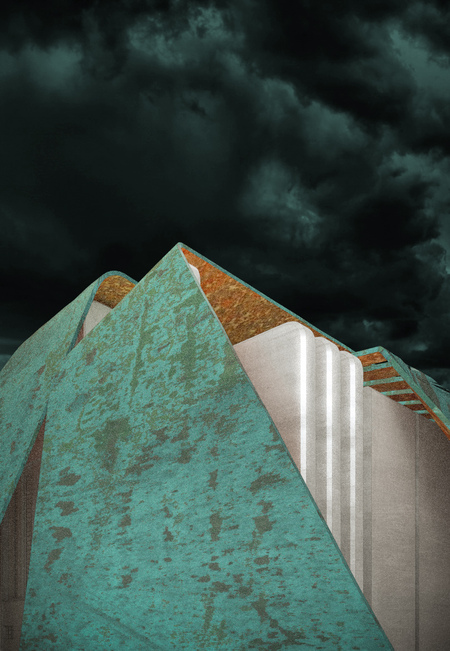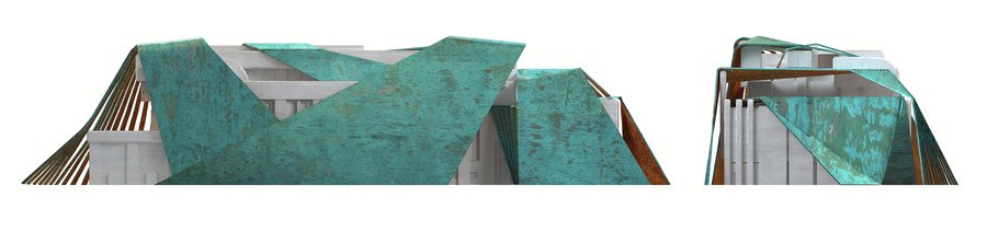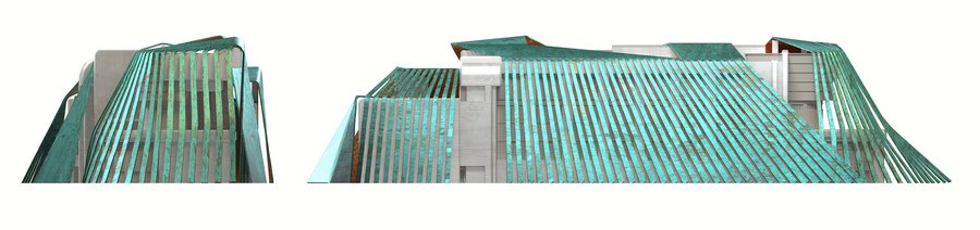 Поэтому и дизайнерские решения фасадов удивительно разные по ощущениям. Графический фасад — несерьезный и декоративный луг цветов, а архитектурный — монументальная металлическая конструкция.