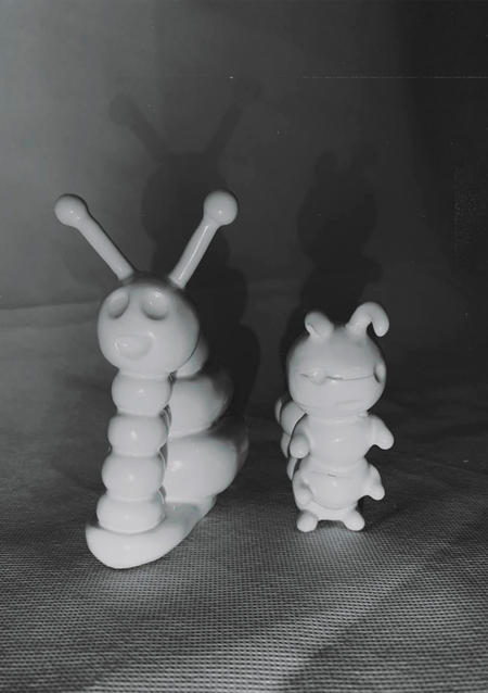 Для теневого театра используются безобидные детские игрушки, сделанные из фарфора, которые могли находиться как у ребенка, так уже и у взрослого человека. Но как только комната погружается в темноту, а на фигурки начинает падать свет, появляются те самые тени, превращающиеся в непонятные, смутно знакомые или даже пугающие образы.