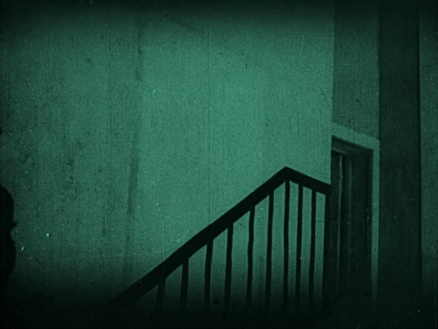 В кульминационной сцене, когда Носферату поднимается по лестнице и тянется к двери спальни Эллен, главную драматургическую нагрузку несет тень. Замкнутое пространство в сочетании с хрупкой закрытой дверью, которая не может служить надежной защитой, становится подспорьем для надвигающегося зла. Дверь здесь выступает в роли последнего рубежа, который нарушается метафизически, через тень вампира, делая происходящее на экране невыносимо напряженным.