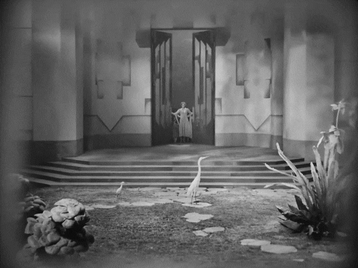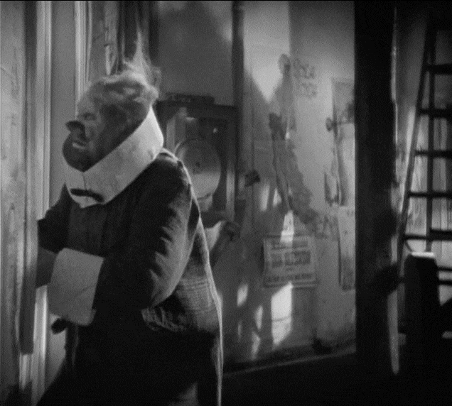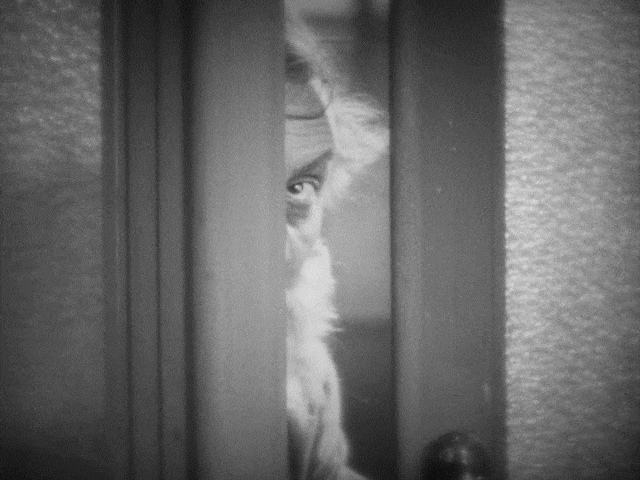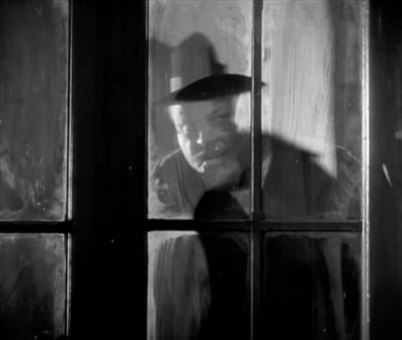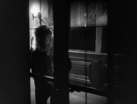 Сцена с тенью попугая в стеклах двери, за которой спрятался доктор — «Вампир — Грёза Аллена Грея» («Vampyr — Der Traum des Allan Grey», реж. Карл Теодор Дрейер, 1932 г.)