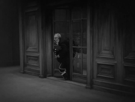 Сцена, в которой швейцар возвращается в пустой дом — «Последний человек» («The Last Laugh», реж. Фридрих Вильгельм Мурнау, 1924 г.)