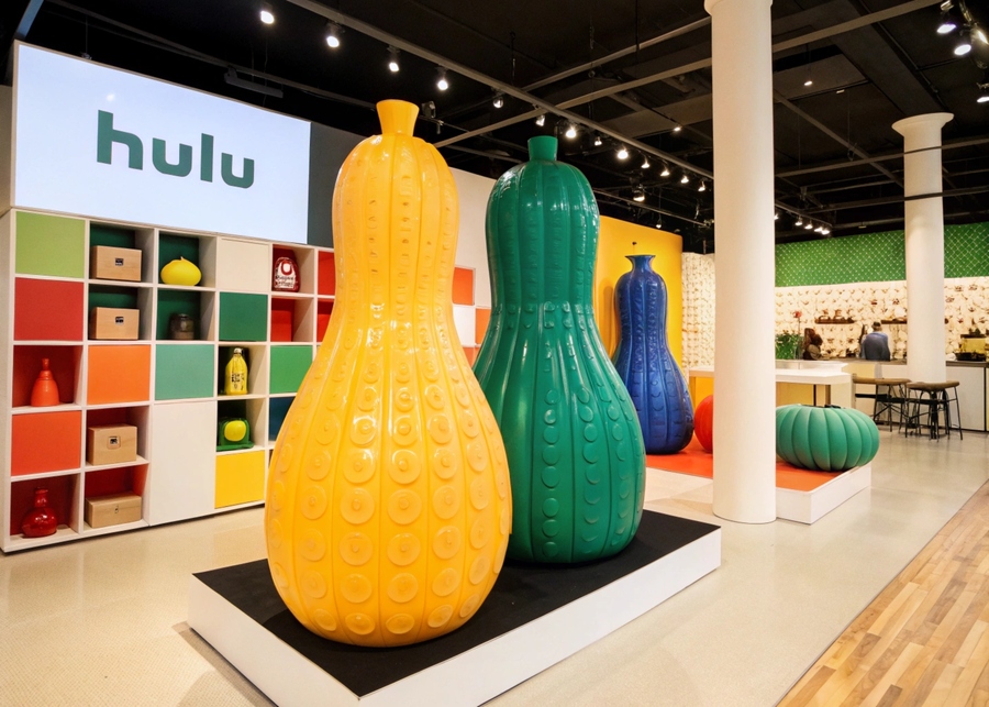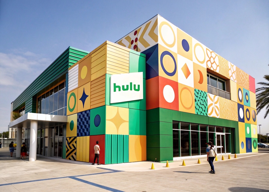 Prompt: Create a branding mockup for Hulu. The mockup should include paper items such as a letterhead, envelope, business card, and pencil, all on a colorful background. Use the logo with the word «HULU» and beneath it phrase and abstract colorful shapes. The design uses clean, minimalistic text blocks with descriptions of company and utilizes vibrant colors that emphasize modularity and the ability for customization, allowing for self-expression and showcasing the brand’s uniqueness. Incorporate a variety of abstract, minimalist shapes that collectively form patterns and modular design blocks.