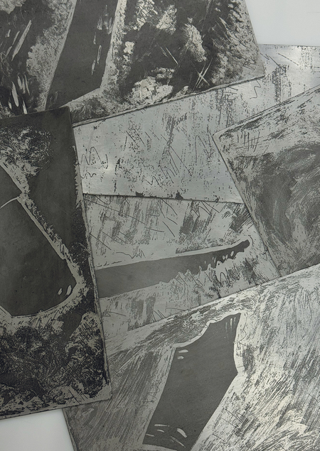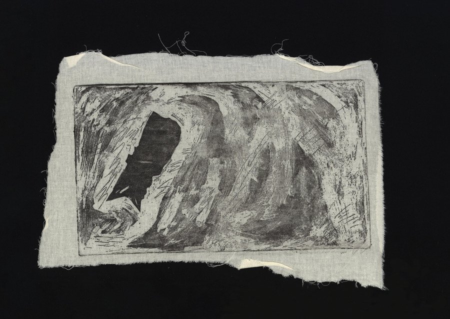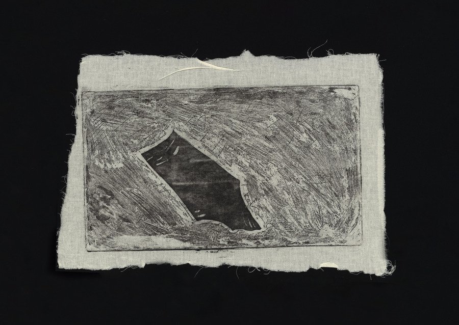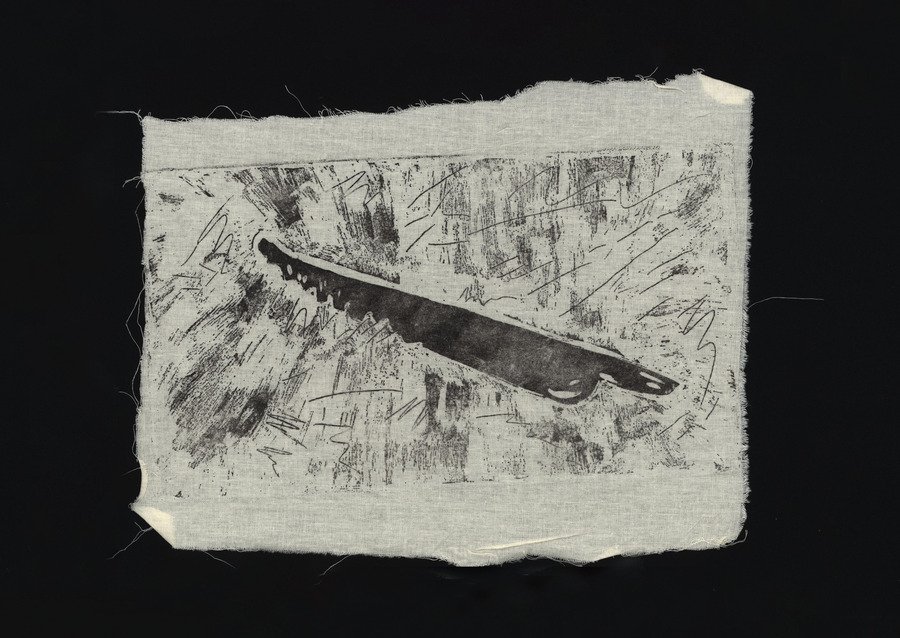 Я методом офорта помещаю в платок «осколки снарядов», которые для многих солдат могут стать главным предметом, буквально перечеркнув всё другие и забрав самое ценное — человеческую жизнь. Это проект об опасности, которая постоянно находится рядом с солдатом и которую он носит даже ближе к телу, чем одежду.