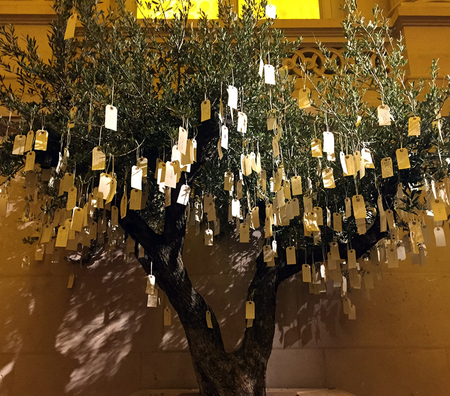 слева работа Йоко Оно «Tree of Wishes», справа работа Гилберта Прош и Джорджа Пассмор «Banners», Take me (I’m Yours), 2015