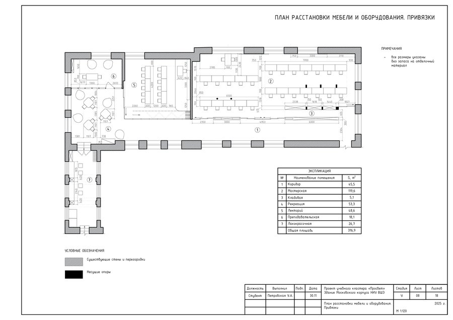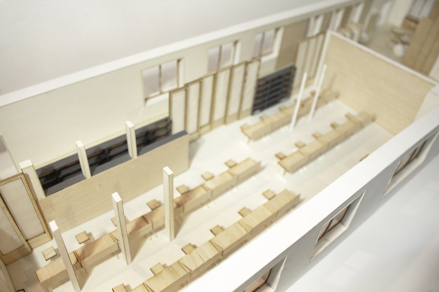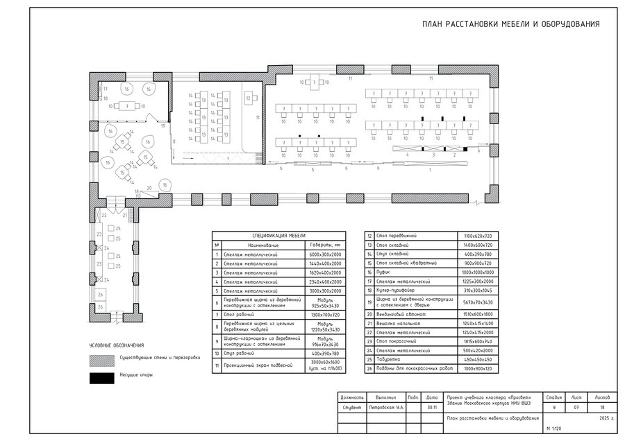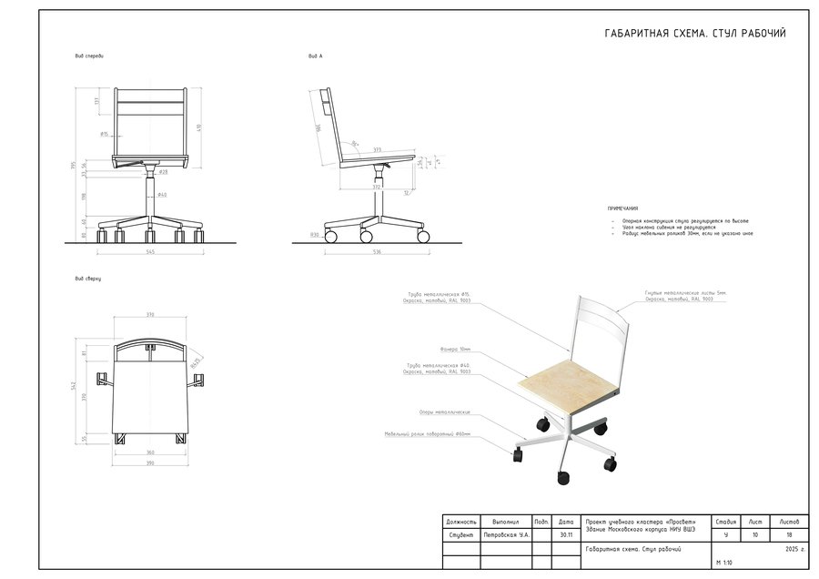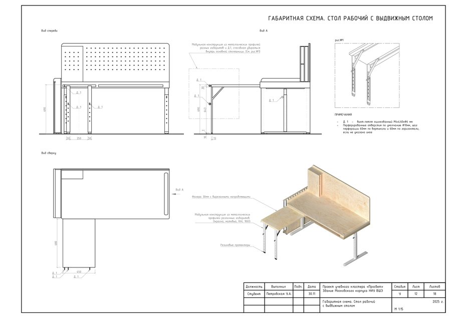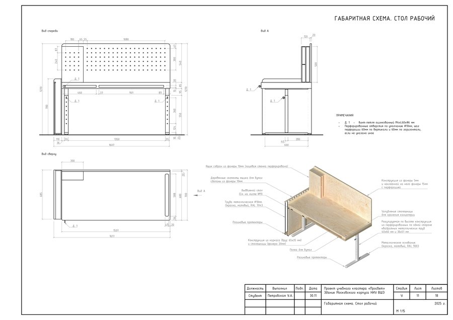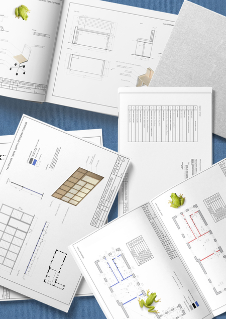 Также были созданы чертежи предметов рабочей мебели, специально разработанных для этого проекта.