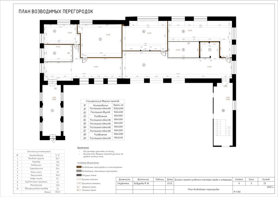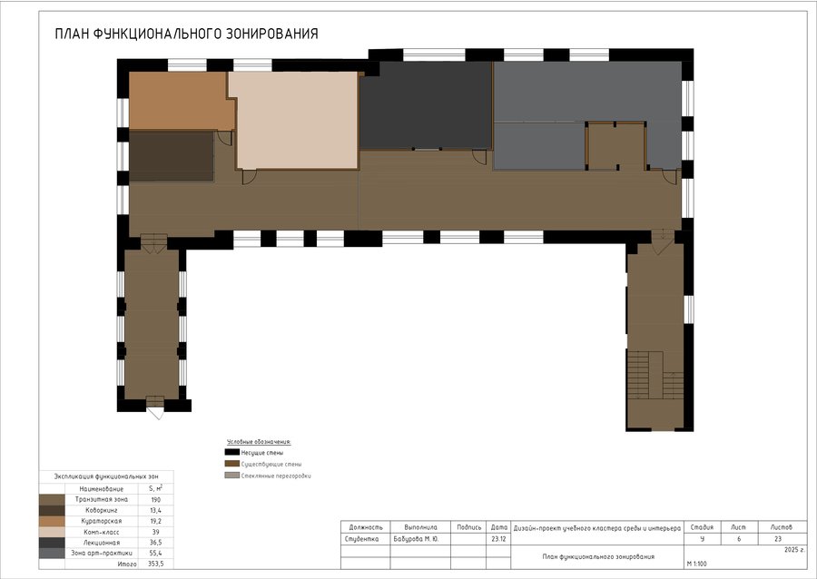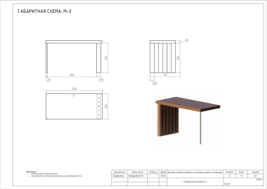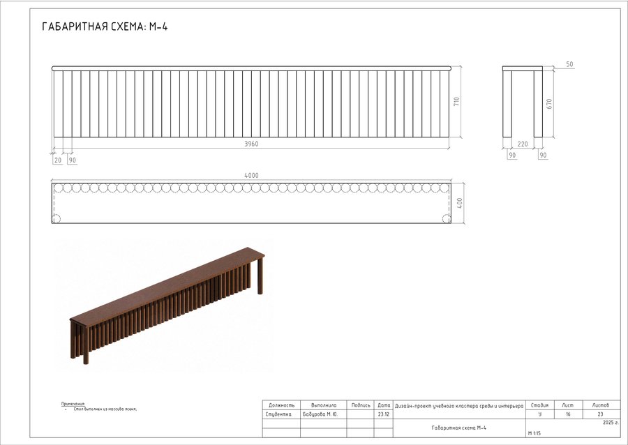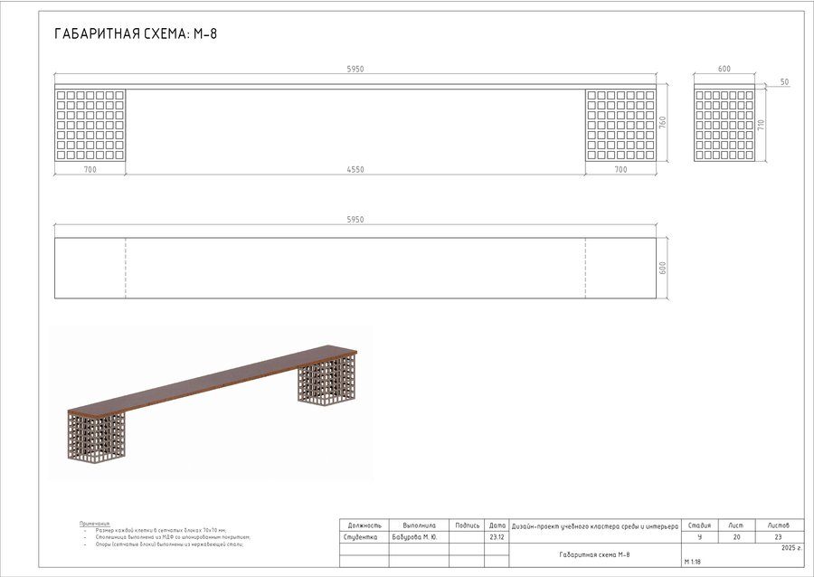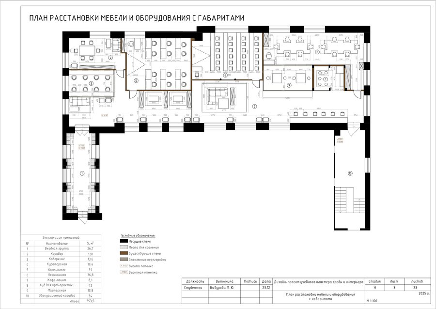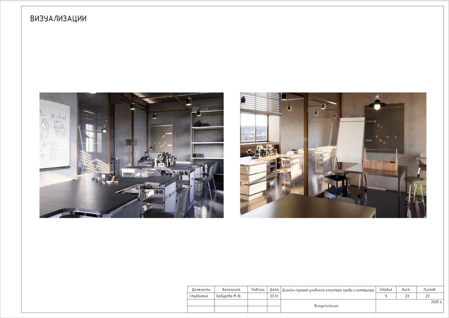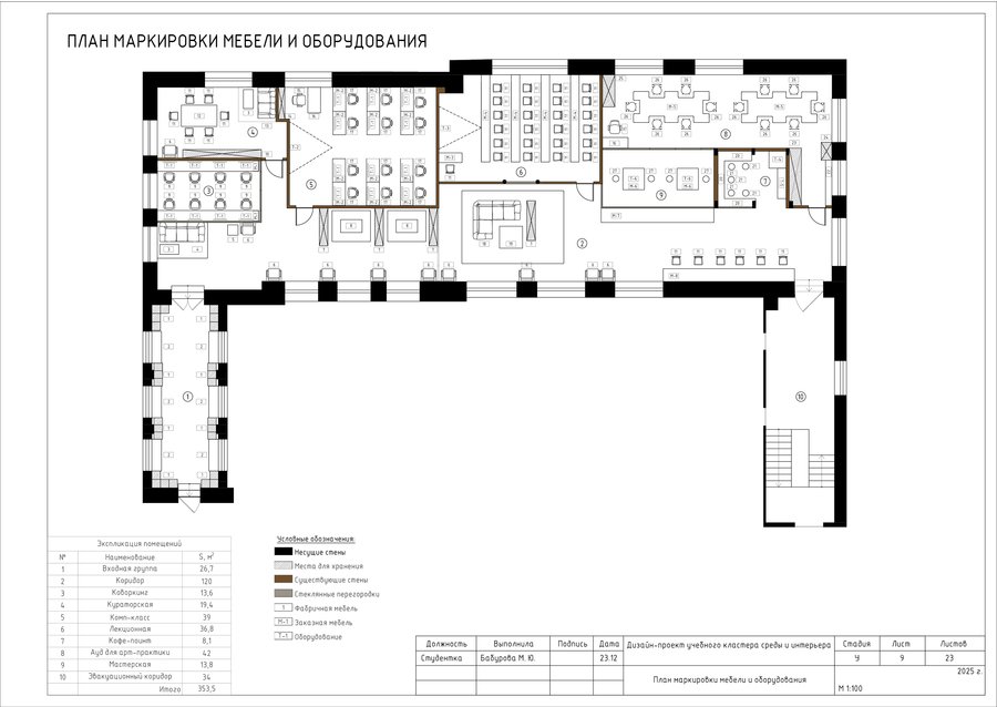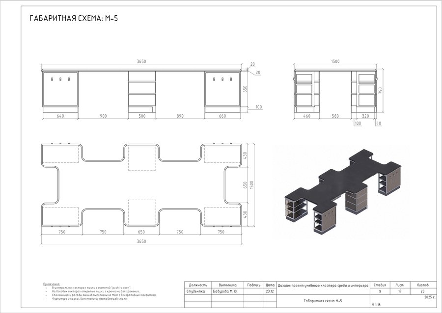 - В рамках модуля стояла задача оформить свой прошломодульный проект учебного кластера дизайна среды и интерьера. В своем альбоме я подготовила различные планы и спецификацию мебели.