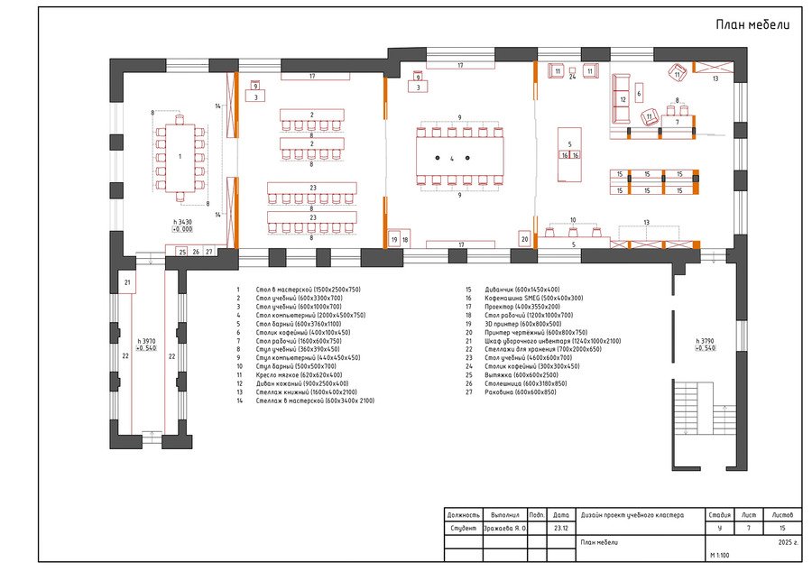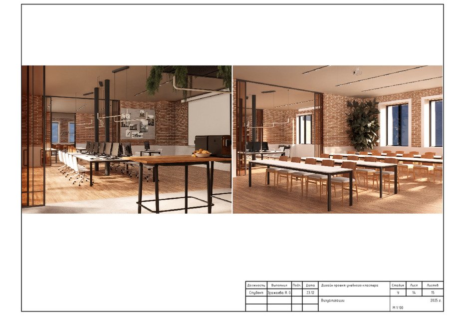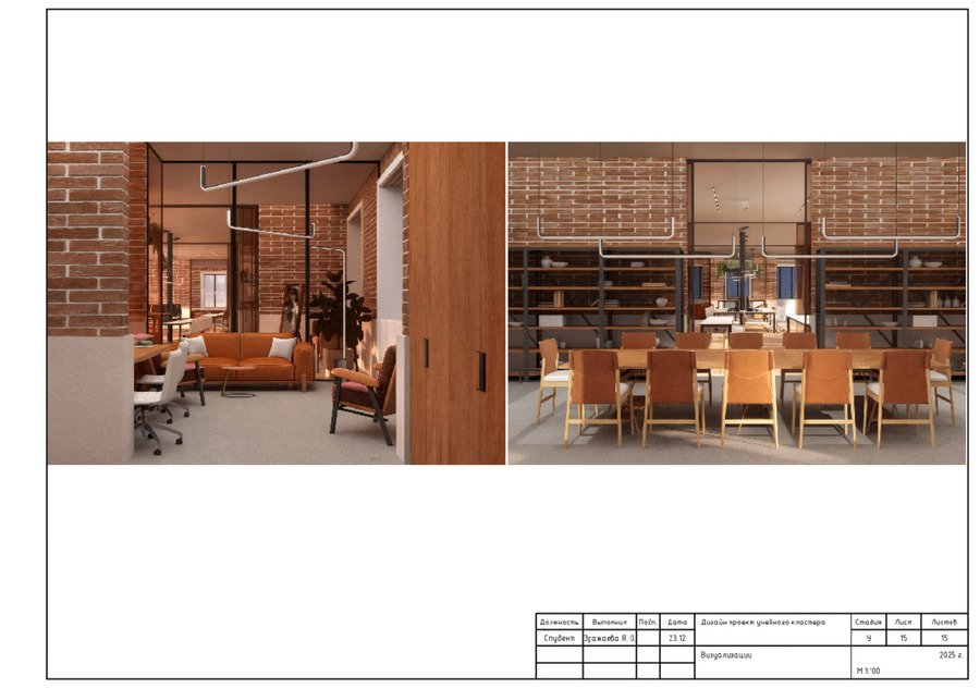 Проект состоит из чертежей, сделанных в программе AutoCAD, а также визуализаций из прошлого модуля. В проекте присутствуют такие чертежи как: основные планы, развертки, разрезы и отдельные элементы мебели кластера.