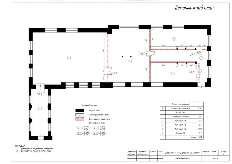 Исходный и демонтажный планы