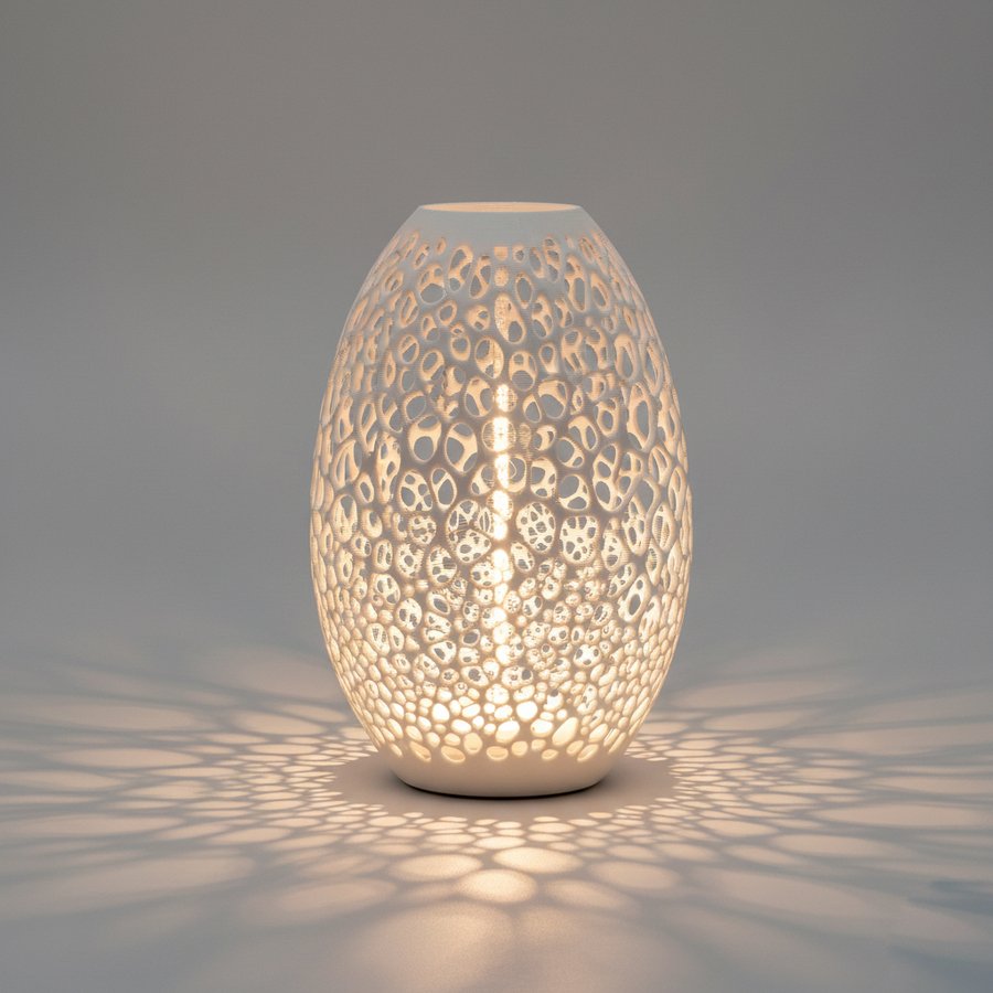 5. Постобработка Удаление поддержек: Механическая очистка ажурных отверстий. Шлифовка: Локальная обработка мест стыка слоев (при необходимости). Покрытие: Для светильника рекомендуется матовый лак для рассеивания света.