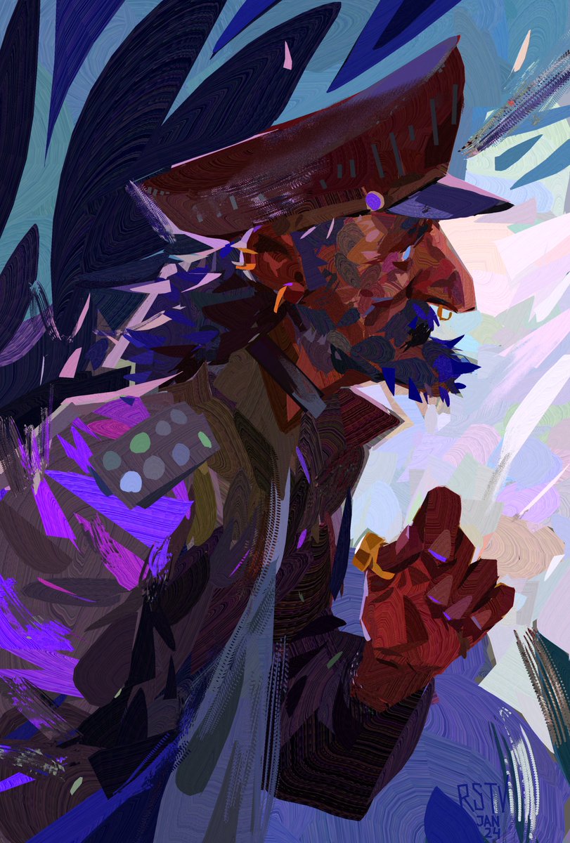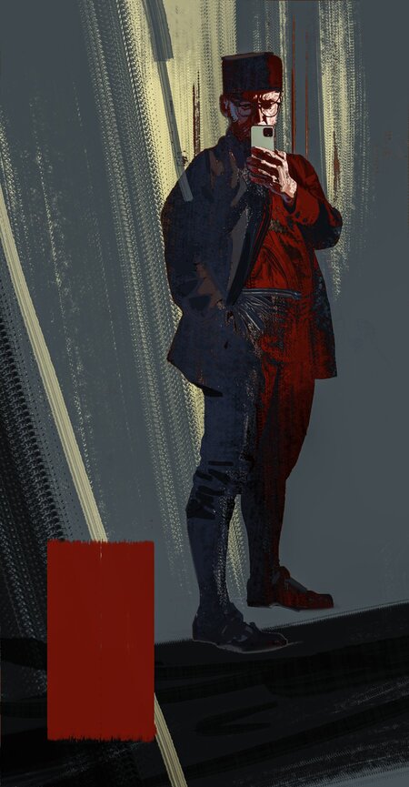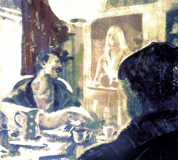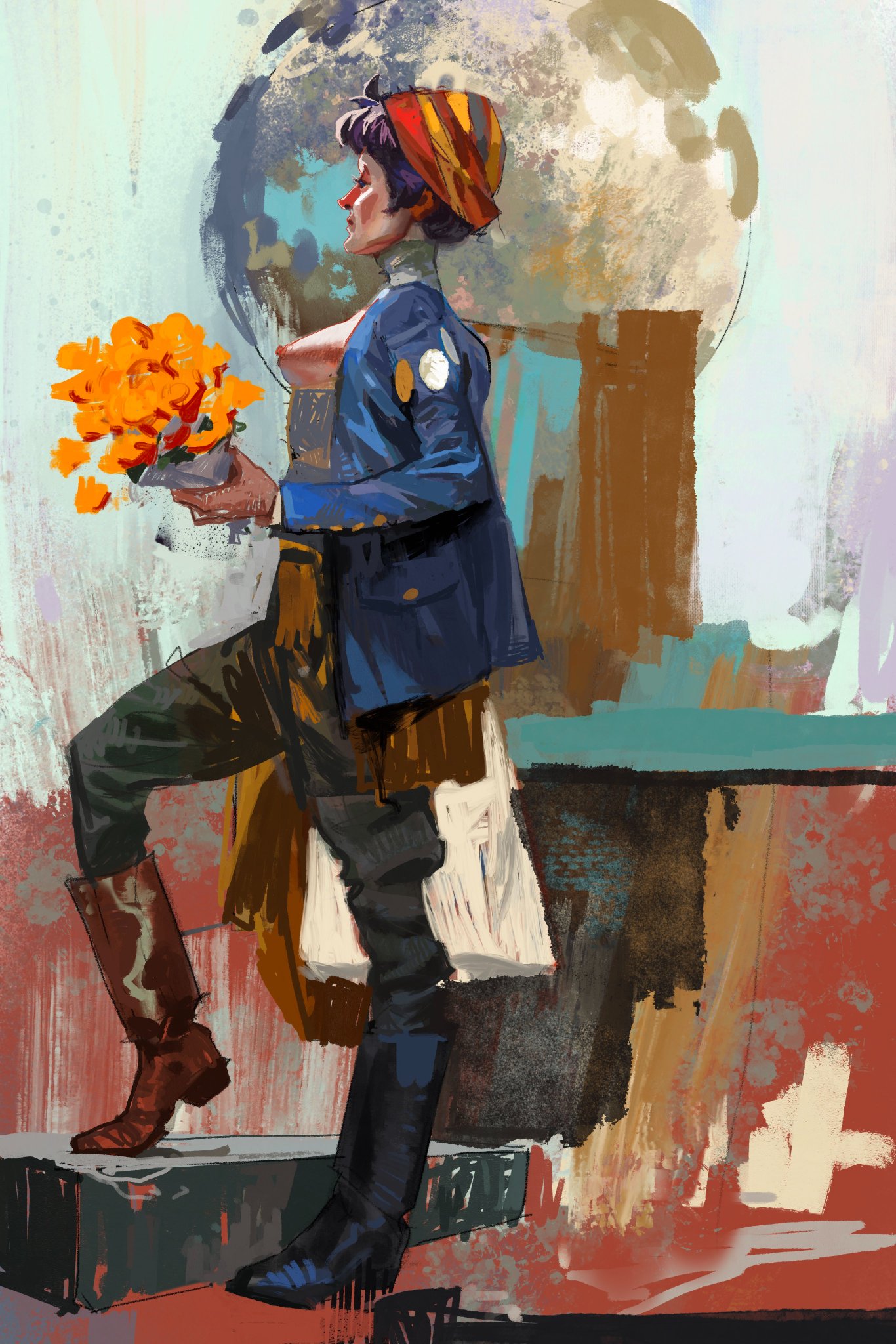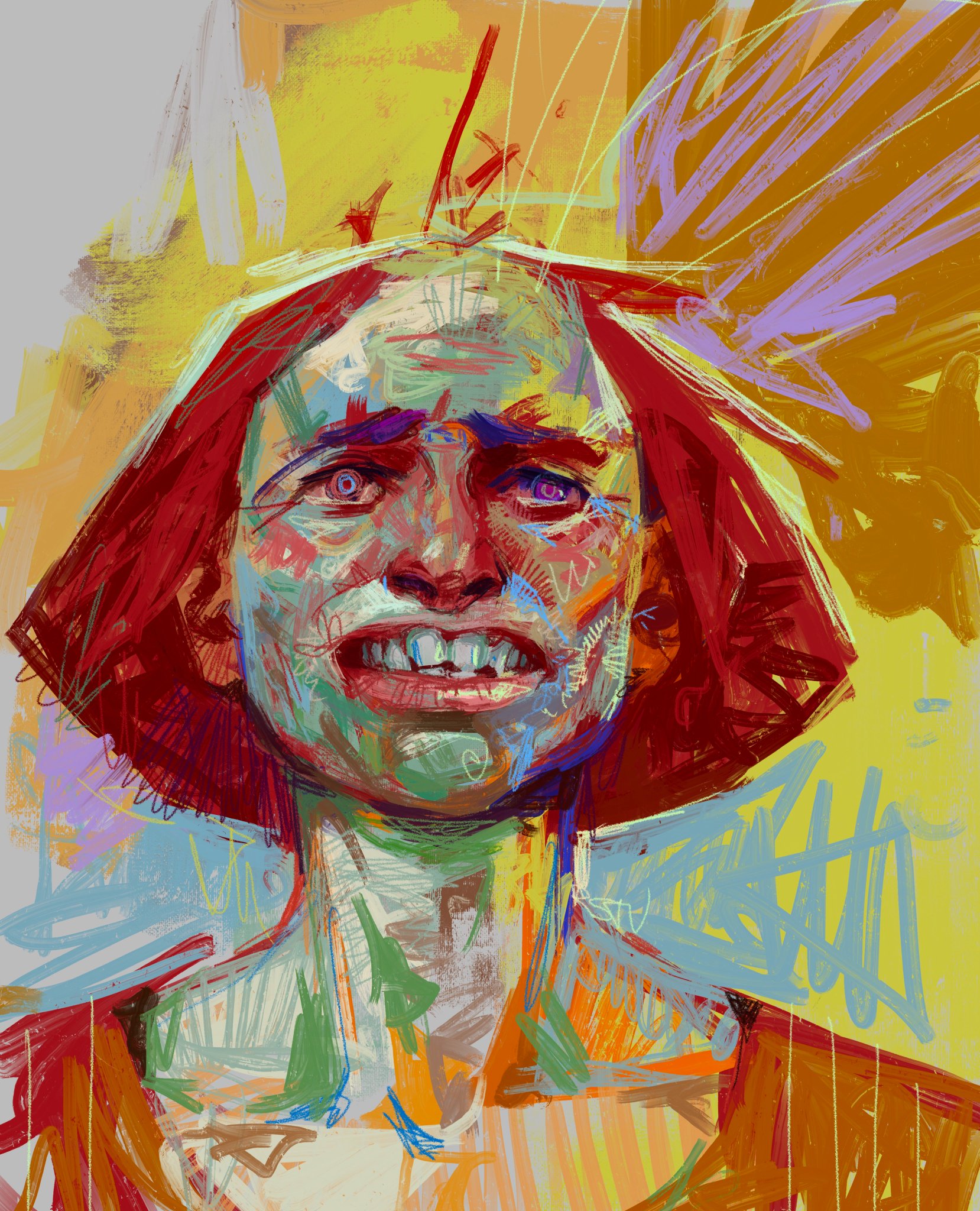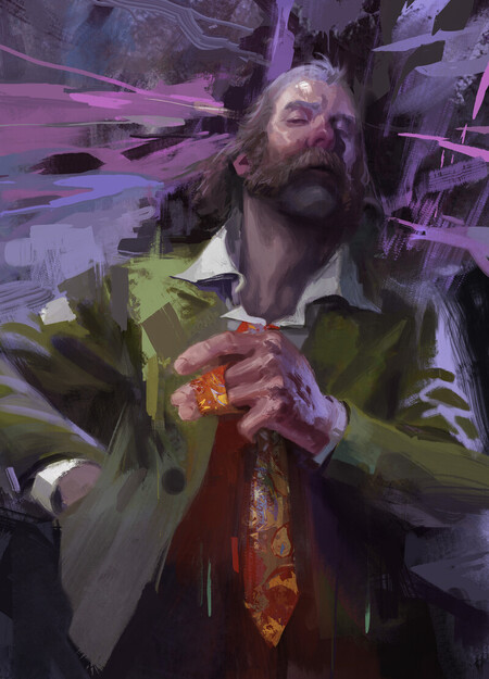 «Аме́нция, аменти́вное помраче́ние созна́ния, или аменти́вный синдро́м (от лат. amentia — „безумие“) — состояние, при котором преобладают растерянность, бессвязность мышления и речи, хаотичность движений». [2] Именно этот термин в первую очередь приходит на ум при взгляде на иллюстрации эстонского художника Александра Ростова. Об авторе известно немного: вероятнее всего, его имя — псевдоним, и родился он в 1987 году. Чаще всего его упоминают в связи с видеоигрой Disco Elysium (2019), где Ростов выступил и арт-директором, и одним из ведущих художников. Его уникальное визуальное мышление определило атмосферу игры, а чувствительность к внутренним разломам личности стала одной из основных тем. Главный герой — детектив, переживающий диссоциативные эпизоды, страдающий от алкогольной зависимости и провалов в памяти, — задаёт общий вектор восприятия мира, который Ростов переводит на язык образов.