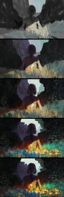 Автор создает ощущение «послевремения» легкими тоновыми переходами и слабыми мазками. Иллюстрации становятся похожими на неуловимое воспоминание.