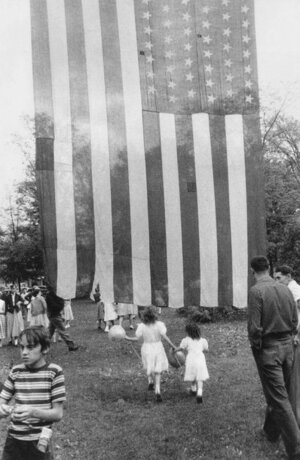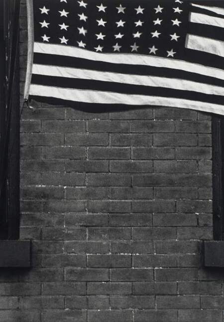 Флаг в работах Франка не выступает патриотическим символом. На фотографии «Парад — Хобокен» (1955) он закрывает лица, символизируя подавление индивидуальности.