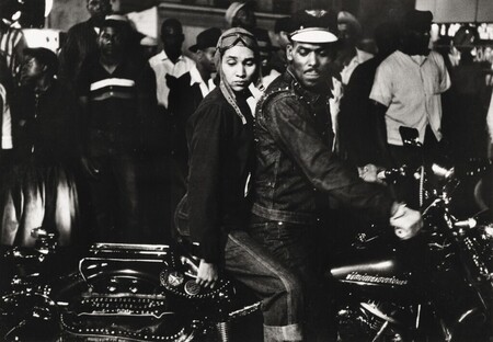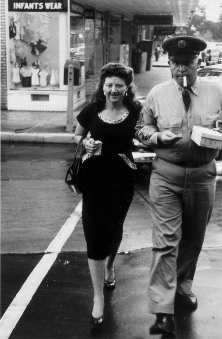 Этот структурный принцип — расположение фигур в ограниченном пространстве с прямым визуальным контактом — получает развитие в других работах. Так, например, он прослеживается в снимке байкеров в джинсовой одежде, снятых с царственным достоинством («Индианаполис», 1956).