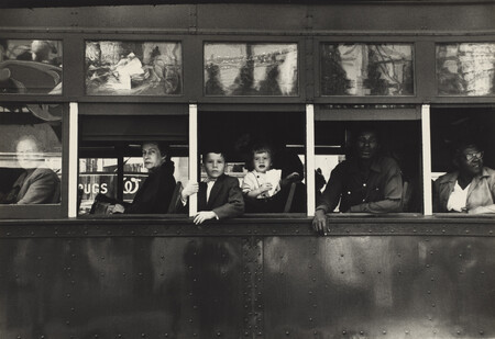 Франк искусно компоновал сюжеты в серии и сетки, выстраивая кадр как социальную диаграмму. Ярким примером становится «Троллейбус — Новый Орлеан» (1955). Лица белых и черных пассажиров в разных концах трамвая визуализируют сегрегацию, действующую даже в движущемся пространстве.