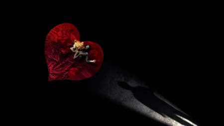 Тем не менее ему сразу будет понятна ассоциация красного цвета с любовью и страстью. Как и в первой новелле, соблазнительная красотка одета в алое платье, что дает зрителю представление о персонаже даже со спины. Сильнее ассоциацию с любовью подчеркивает образ сердца-кровати, но пустое черное пространство вокруг держит в напряжении, а очередная диагональная тень усиливает саспенс.