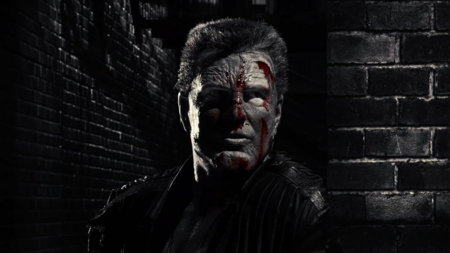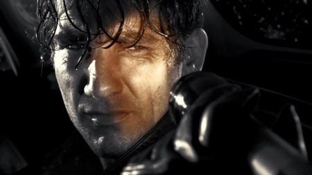 Антитезой выступает Хартиган, который ярче других подсвечен белым. Он — проявление чего-то хорошего в этом месте, тогда как его продажный коллега снова сливается с пейзажем города грехов, вновь показывая, что он принадлежит ему, а Хартиган — нет.