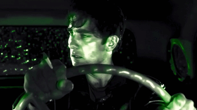 Однако Дуайт — протагонист, о чем также говорит цвет его машины и обуви — красный. Здесь он обозначает скорость, бунтарство, силу. Рифмованные кадры с машинами дают дополнительную визуальную информацию, противопоставляя протагониста и антагониста даже на уровне цвета. Режиссер делает на этом акцент, раскрашивая машины в комплементарные цвета: синий и красный.