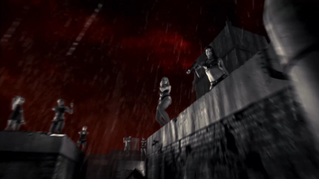 Промежуточная победа полиции подчеркивается углом камеры: мужчина возвышается над женской фигурой, а ракурс усиливает разность масштабов. Это битва не просто двух людей. Это битва Старого города и Синдиката. То, что мафия выигрывает, также обозначается с помощью теней. Как и в новелле «Трудное прощание», решетки от окна символизируют несвободу, проигрыш.
