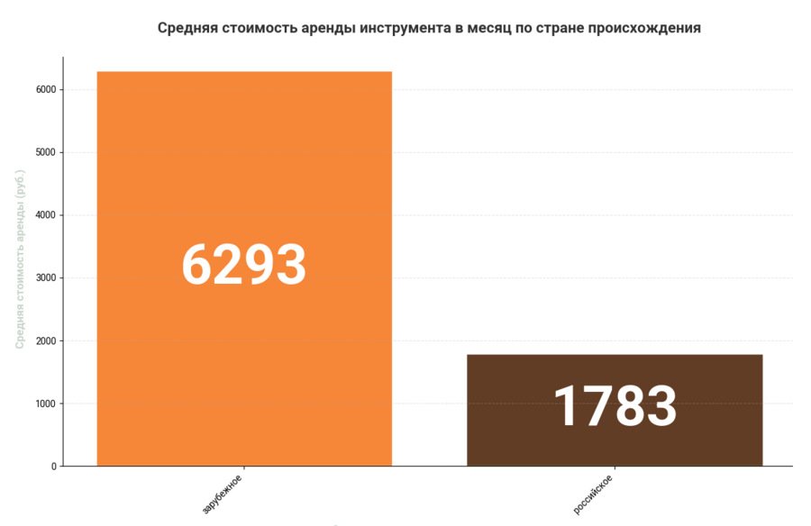 Зарубежные инструменты в 3,5 раза дороже российских. Отечественные производители наиболее доступные и представляют собой бюджетный сегмент рынка. Премиальными же считаются Немецкие и Японские инструменты. Ценовое разнообразие позволяет удовлетворять потребности разных категорий клиентов (будь то частная музыкальная школа или консерватория). Однако всё же оптимальными по соотношению цена/качество для учебных заведений будут инструменты из США, Франции, Италии (они заполняют средний ценовой сегмент).