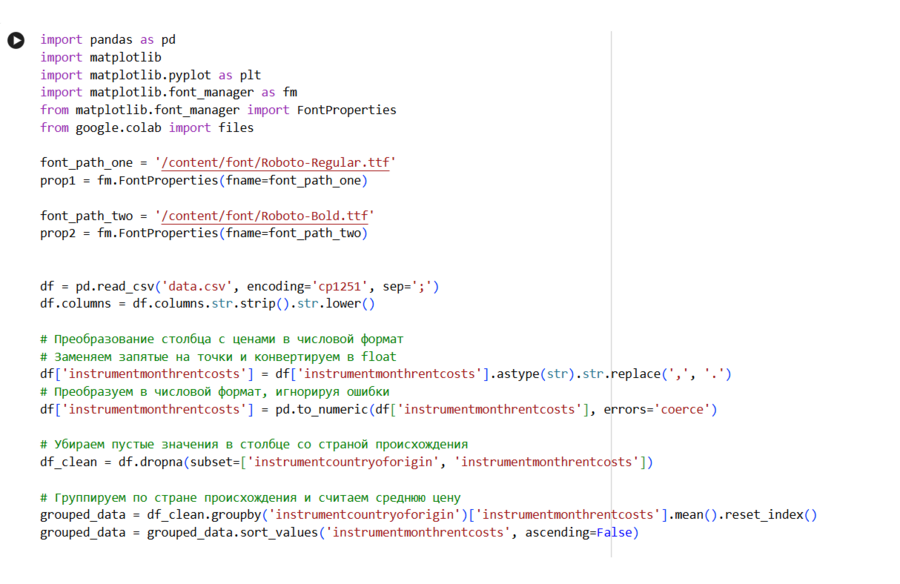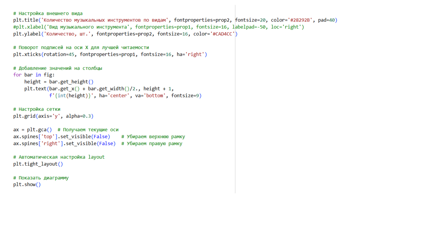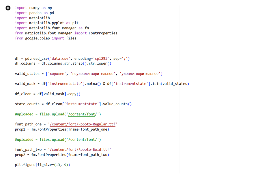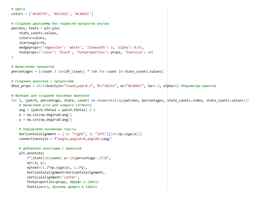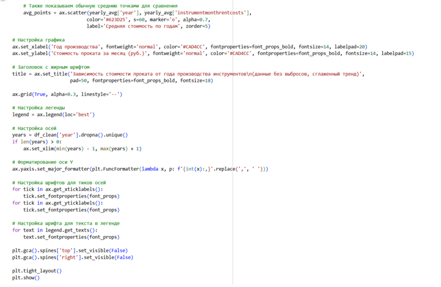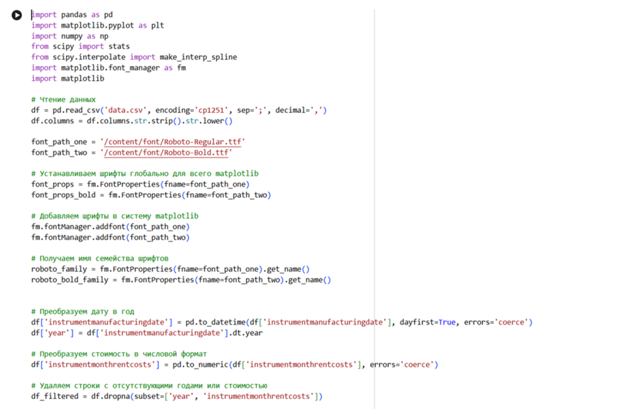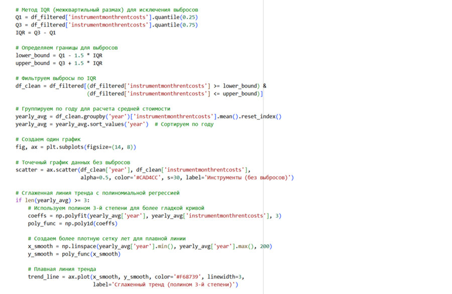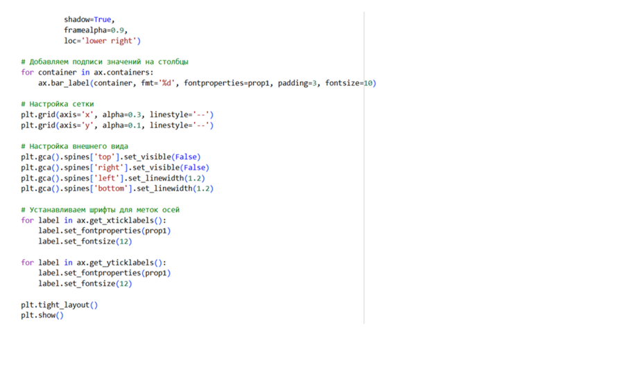 В качестве вспомогательного инструмента для построения графиков и систематизации информации, использовалась генеративная модель Нейросеть DeepSeek. С её помощью получалось поправлять код, где были неточности или ошибки, а также корректировать стиль графика, когда требовалось убрать абрис или заменить шрифт непосредственно на самом изображении.