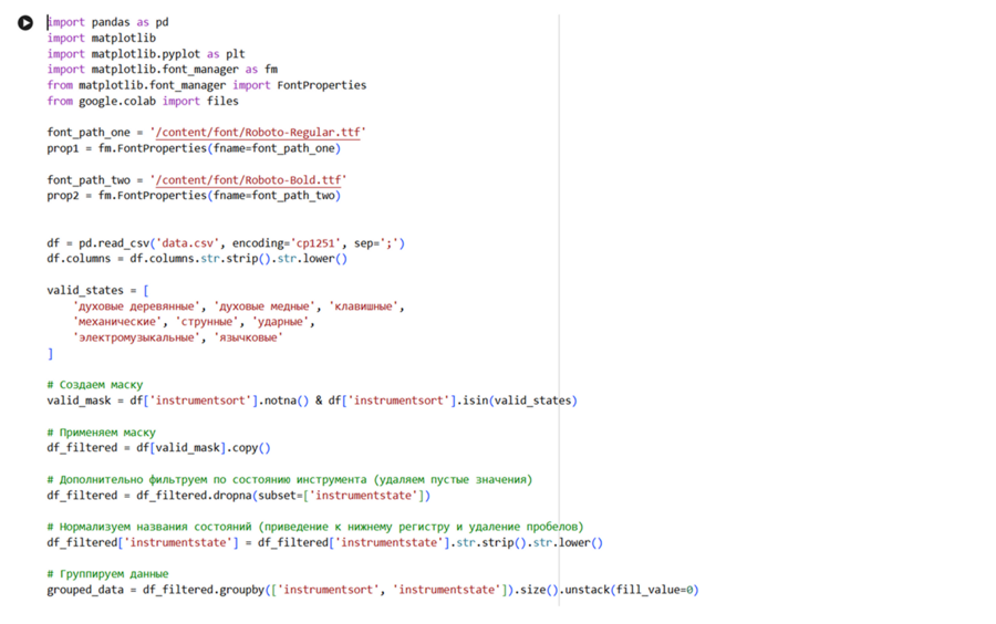 1. Обеспеченность музыкальными инструментами музыкальных образовательных учреждений // Портал открытых данных URL: https://data.mos.ru/opendata/1037?objectId=842810077&isDynamic=false 2. Нейросеть DeepSeek // DeepSeek URL: https://chat.deepseek.com/