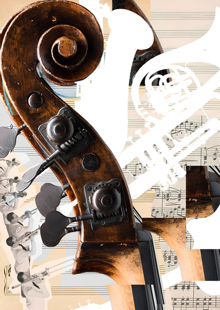 С визуальной точки зрения я решила использовать цвета, которые ассоциируются с эстетикой музыкальных учебных заведений — натуральные древесные оттенки, металл (латунь, медь и тд), бумага, кожа. Основой визуальной концепции служит коллажный стиль иллюстраций, а для оформления текста в диаграммах используется шрифт Roboto в двух начертаниях: regular и bold