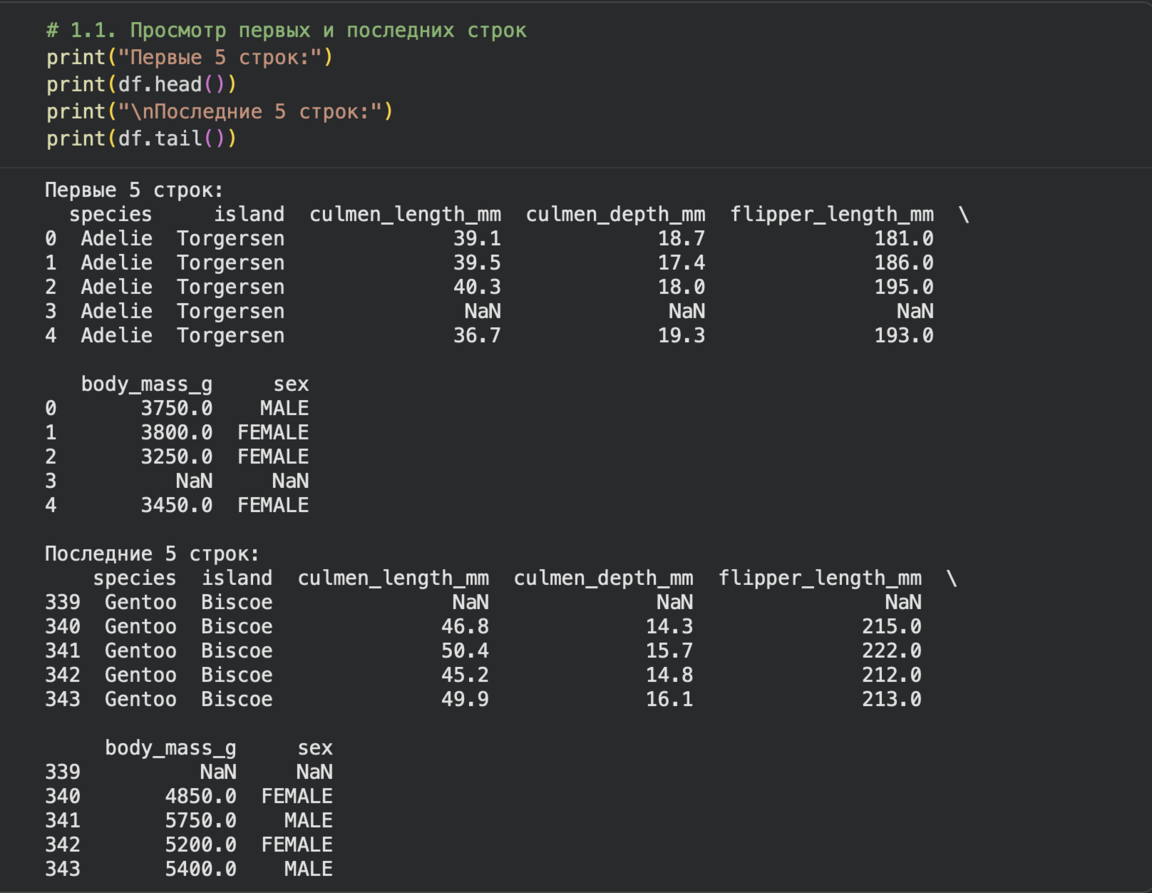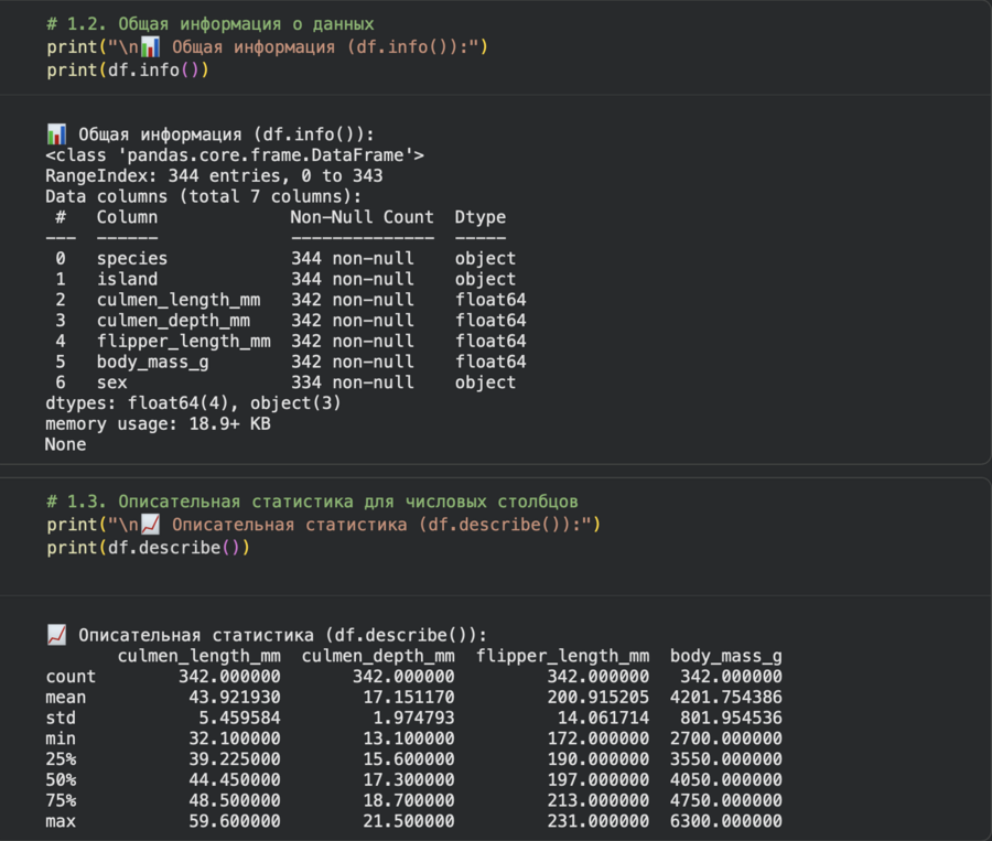 -Использовались методы .info () и .describe () для получения метаинформации и базовой статистики
