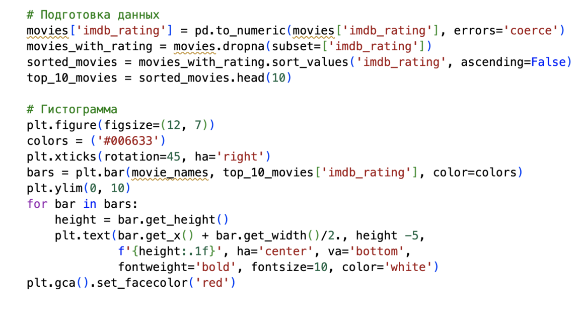 Раз уж мы заговорили о одном фильме, то по-моему самое время наконец-то составить диаграмму, отражающую топ самых рейтинговых фильмов, этого списка.