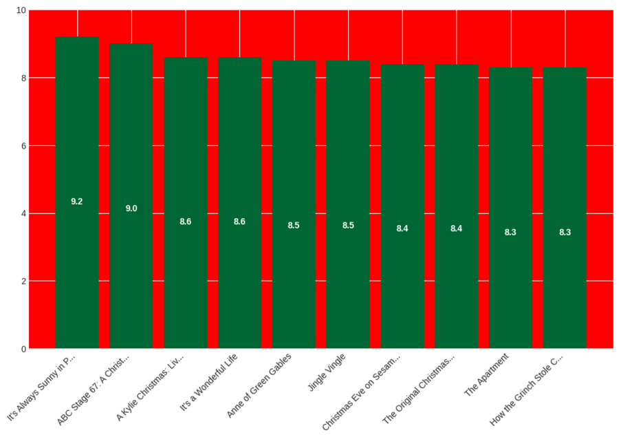 Первое и второе место в рейтинге занимают эпизоды телесериалов, на третьем, неожиданно, концертный фильм Кайли Миноуг. И только на третьем месте мы находим фильм «It’s a Wonderful Life».