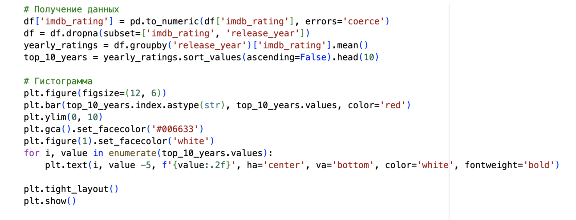 У 2020 года с рейтингом не задалось, поэтому мне захотелось посмотреть как в целом обстоят дела, поэтому я вывела топ-10 самых рейтинговых годов.