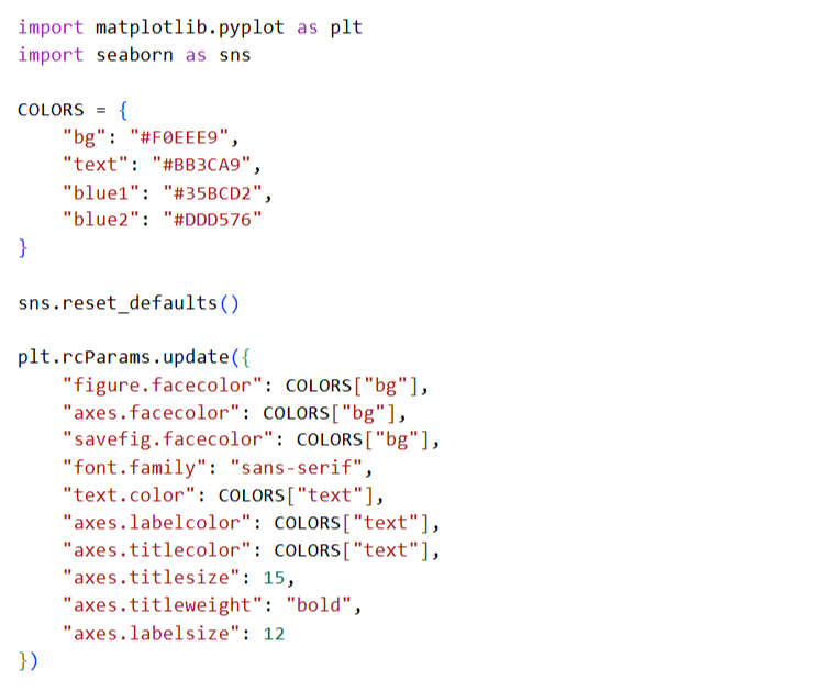 Поэтому в коде, отвечающем за визуальный стиль графиков, я прописала и настроила параметры цвета текста, сетки и шрифтов в соответствии со своей задумкой. Это сделало графики читаемыми и стильными, а также позволило убрать лишние рамки и стандартные стили Seaborn.